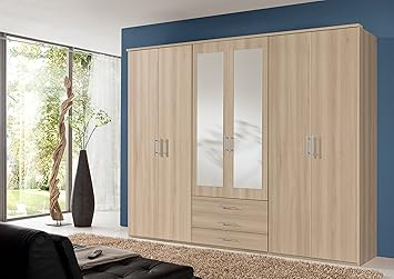 Rauch Furniture Altona Rivera Oak With Fango 6 Door 3 Drawer Wardrobe With 2 Mirror W271cm