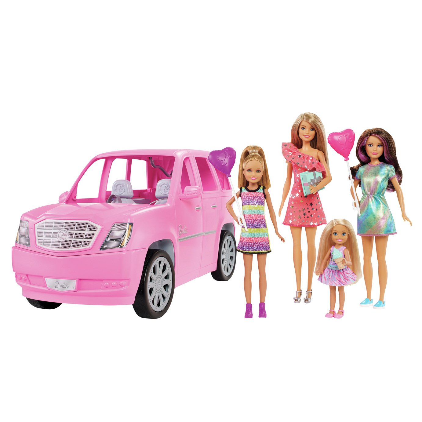 License plate and shiny purple hubcaps make a stylish statement while the doll in her matching dress with glittery accents and a gold car key looks just as fabulous. This pink barbie closet is not only designed for portability with carrying handles but it also comes with clothing and accessories for lots of storytelling fun wherever you are. Barbie toys collection from the leading toys provider.