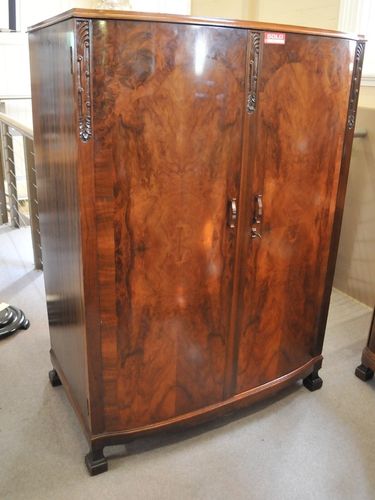 Superb Art Deco Walnut Lowboy Wardrobe Silky Oak Lined With
