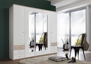 German Bergen 225cm Wardrobe White Oak With Drawers