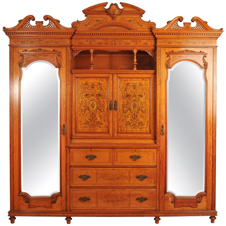 19th Century Large English Satinwood Wardrobe