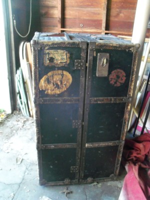 Antique Belber Steamer Trunk Wardrobe Chest 2303751